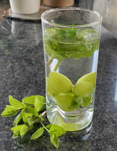 Kalter Pfefferminztee mit eisgekühlten Trauben